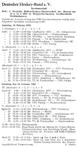 Spielplan der 1. Deutschen Hallen-Hockey-Meisterschaft der Herren