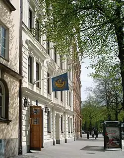 Seit 1953 bis heute gibt es wieder eine Deutsche Schule, zunächst in Trägerschaft eines „Komitees Östermalm“, das 1955 vom Deutschen Schulverein abgelöst wurde. Die Schule residierte zunächst im zweiten Stock des Hauses Svartmangatan 16 in der Altstadt (Gamla Stan) und startete mit nur sieben Jungen und Mädchen, ab 1954 war sie mit 22 Schülern zu Gast in mehreren Räumen eines Jugendheimes in der Folkungagatan in Södermalm.[18] 1955 wurden erstmals Lehrkräfte aus der Bundesrepublik Deutschland an die Schule verpflichtet.[19] 1958 zog die Schule in das Gebäude Karlavägen 25 um, wo auch die Deutsche Schule in der Zeit des Nationalsozialismus 1941–1945 ihren Sitz hatte. Das zunächst angemietete Gebäude befindet sich inzwischen im Besitz der Bundesrepublik Deutschland. Ebenfalls 1958 erhielt die Deutsche Schule Stockholm von der Kultusministerkonferenz die Anerkennung als „Deutsche Auslandsschule“; eine Elternvertretung wurde im gleichen Jahr gegründet. Die der schwedischen Schulaufsicht unterstellte Schule war bis zur Klasse 10 gediehen und bot ihren Schülern sowohl die deutsche Mittlere Reife als auch das schwedische Realexamen an. Sie hatte inzwischen 150 Schüler.[20] 1960 wurde ein Kindergarten eingerichtet, 1962 (die Schülerzahl war auf über 200 angewachsen) gab es den ersten Abiturjahrgang mit fünf – nur männlichen – Absolventen. Im Schuljahr 1968/69 wurde die 5-Tage-Woche eingeführt.[21] In den 1970er und 1980er Jahren gab es eine intensive Auseinandersetzung und Bemühung um die Gestaltung der Deutschen Schule als Begegnungsschule, nachdem Stimmen laut geworden waren, welche die Schule – auch aus finanziellen Gründen – auf eine so genannte „Expertenschule“ (d. h. eine Schule nur für die Kinder von vorübergehend in Stockholm ansässigen deutschen Experten, wie z. B. Geschäftsleuten, Diplomaten) reduzieren wollten. Es wurde ein Modell entwickelt, um muttersprachlich deutsche und muttersprachlich schwedische Kinder, die zunächst getrennte Grundschulklassen besuchen, in der Unterstufe des Gymnasiums zu integrieren. 1988 bekam die Schule eine größere Mensa auf dem Schulhof; 2004 konnte die Grundschule der Deutschen Schule Stockholm in das Botschaftsgebäude der ehemaligen DDR umziehen. An der Feier zum 50-jährigen Jubiläum der Wiedereröffnung 2003 nahm auch der damalige Bundespräsident Johannes Rau teil.
