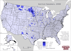 Deutsch war im 19. und zu Beginn des 20. Jahrhunderts eine der am häufigsten gesprochenen Sprachen in den Vereinigten Staaten von Amerika. Heute ist Deutsch die zweithäufigste Sprache in South Dakota und North Dakota. Die übergroße Mehrheit der deutschstämmigen US-Bürger versteht heute kein Deutsch, diese zählen sich aber weiterhin zu den Deutschamerikanern, die nach Volkszählungsergebnissen mit Selbstangabe zur Hauptabstammung mit knapp 50 Millionen die größte „ethnische Gruppe“ in den USA bilden, noch vor den irisch- oder englischstämmigen Amerikanern.[1] Erklären lässt sich dies aus der Tatsache, dass die Deutschen im Verlauf mehrerer Jahrhunderte in verschiedenen Wellen und zu verschiedenen Orten eingewandert sind, und dass es zwischen den Migrationszielgebieten wenig Kontakte gab, die zwischen den Enkelkindern der Migranten an der Ostküste und den frisch angekommenen Migranten auf der Prärie gepflegt wurden. Außerdem wurde die Muttersprache im Zusammenhang mit den beiden Weltkriegen bewusst zurückgedrängt.
