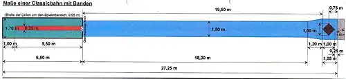 Die Aufsatzbohle muss in der Mittellinie des Spielbereiches angeordnet sein. Ihre Farbe muss zu, übrigen Spielbereich einen deutlichen Unterschied aufweisen. Beim Übergang zur Kugellauffläche muss die Oberfläche der Aufsatzbohle um 1–3 mm über dem Niveau der Kugellauffläche liegen.