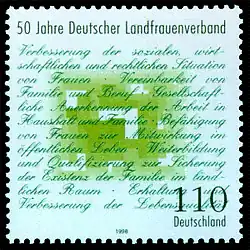 Nach 1989 gründeten sich in den ostdeutschen Bundesländern ebenfalls Landfrauenverbände, die zwischen 1991 und 1993 dem Deutschen Landfrauenverband beitraten.[12]