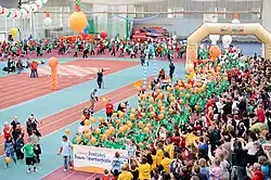 Einmarsch der Sportler beim 12. Down-Sportlerfestival in Frankfurt