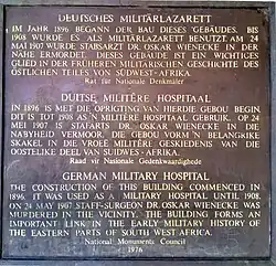 Es wurde 1896 von der Deutschen Schutztruppe im damaligen Deutsch-Südwestafrika errichtet und ist seit 20. Dezember 1974 ein Nationales Denkmal. Bis 1904 wurden hier Menschen aller Volksgruppen medizinisch versorgt.