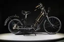 Im Treppenraum ergänzen erste Fahrräder mit Hilfsmotor vom Beginn des 20. Jahrhunderts die Geschichte der mobilen Entwicklung auf zwei Rädern.