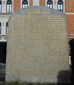 Auf der dem Donaukanal zugewandten Seite des Deutschmeisterplatzes befindliche Tafel wurden die Namen der Regimentsinhaber seit 1697 verewigt. Die nur noch schlecht leserliche Rückseite dieser Tafel trägt die Namen der „Besten der Besten“.