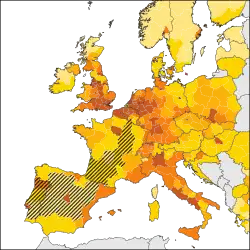 - ↑ Yoann Doignon, Sébastien Oliveau, Isabelle Blöss-Widmer: L’Europe méridionale depuis 20 ans : dépeuplement, dépopulation et renouveau démographique. In: Espace populations sociétés. Space populations societies. Nr. 2015/3-2016/1, 20. März 2016, ISSN 0755-7809, doi:10.4000/eps.6171 (openedition.org [abgerufen am 9. Juli 2020]).