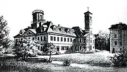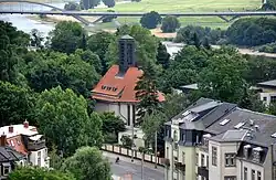 Auch das Wasserpalais auf Cosel (auch „Kuppelvilla“ genannt) baute Woldemar Hermann für de Villers. Es wurde im Zweiten Weltkrieg zerstört und nicht wieder aufgebaut.[30] Die Diakonissenanstalt hatte die Villa ab 1927 als Krankenpflegeschule genutzt. Im Jahr 1927 wurde die Krankenpflegeschule der Anstalt staatlich anerkannt, das heißt Krankenpflegerinnen durchliefen staatliche Prüfungen und erhielten offizielle Abschlüsse. Am ersten Lehrgang nahmen zehn Schwestern teil.[31] Die Ausbildung zur Krankenpflegerin dauert heute durchschnittlich drei Jahre. Während die Ausbildung zu DDR-Zeiten an eine staatliche Fachschule gebunden war, ist sie seit 1990 wieder eigenständig.