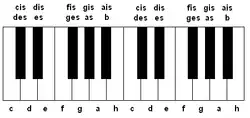 Die Stammtonreihe c-d-e-f-g-a-h entspricht den weißen Tasten der Klaviatur. Es sind die Töne der C-Dur-Tonleiter.