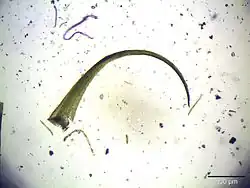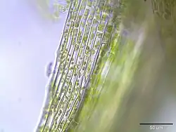 Die Blätter sind am Grunde nicht oder nur wenig scheidig. Sie sind in eine lange, pfriemenförmige und sichelförmig gekrümmte Spitze ausgezogen, die von der Blattrippe vollständig ausgefüllt wird. In der Regel stehen die Blätter deutlich einseitswendig am Stämmchen. Der Blattrand ist von der Spitze bis weit hinab fein gezähnt.