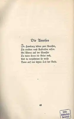 - ↑ Joachim Ringelnatz, 103 Gedichte. Rowohlt, Berlin 1933, S. 32