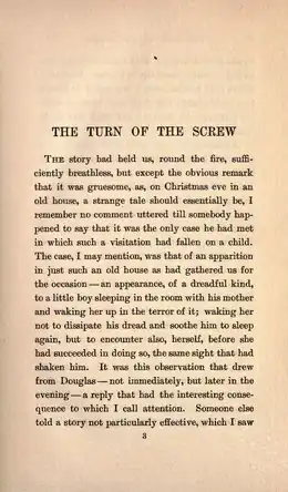 Der Titel The Turn of the Screw bezieht sich auf eine Szene, in der das Kindermädchen Flora dabei beobachtet, wie diese ein Holzschiff baut und dabei einen Mast in den Rumpf hineinzudrehen versucht, wovon das Kindermädchen sie entschlossen abhält.