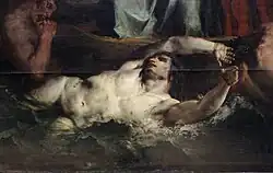 Zu dem Gemälde fertigte er eine Vorstudie mit den Abmessungen 24 × 32 cm. Sie wurde 1937 unter dem Titel Le damné du Styx zum Verkauf angeboten und zeigt den links im Vordergrund im Wasser treibenden Körper.[5]