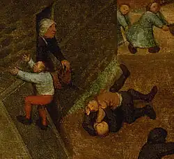 - ↑ a b c d e Christiane Högg de Souse Monteiro / Michaela Krause: Das Kinderspielebild von Pieter Bruegel. ( vom 19. Juli 2016 im Internet Archive) Gruppenarbeit für das Hauptseminar „Pädagogische Themen in der Kunst“.
