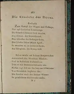 Die Kraniche des Ibykus ist eine Ballade von Friedrich Schiller aus dem Jahr 1797. Sie wurde erstmals in Schillers Musen-Almanach für das Jahr 1798 veröffentlicht.
