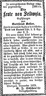 - Gottfried Keller: Die Leute von Seldwyla. Göschen, Stuttgart 1873–74