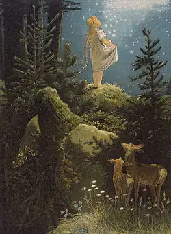 - ↑ Janosch: Die Sterntaler. In: Janosch erzählt Grimm's Märchen. Fünfzig ausgewählte Märchen, neu erzählt für Kinder von heute. Mit Zeichnungen von Janosch. 8. Auflage. Beltz und Gelberg, Weinheim und Basel 1983, ISBN 3-407-80213-7, S. 137.