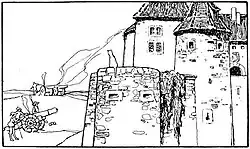 Nach der Abreise des dritten Bruders erschrecken die Leute vor dem Geschrei der vom Mäusefangen durstigen Katze. Die Räte schicken einen Edelknaben als Herold zu ihr, um sie aufzufordern, das Schloss zu räumen oder zu gewärtigen, dass Gewalt gegen sie gebraucht werde. Er missdeutet das ‚miau, miau‘ der Katze als ‚durchaus, durchaus nicht‘. Das Schloss wird in Brand geschossen, die Katze entkommt.