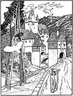 - ↑ Ernst Heinrich Meier: Von drei Schwänen. In: Deutsche Volksmärchen aus Schwaben. C.P. Scheitlin’s Verlagshandlung, Stuttgart 1852, 38–42; Digitalisat. zeno.org.