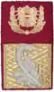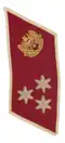 An Stelle des Korpsabzeichens ist auf den Distinktionen der die Ärzteschaft symbolisierende Äskulapstab in einer ellipsenförmigen Einfassung angebracht. Die Stellung des Trägers wird durch ein Akanthusornament dargestellt.