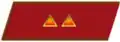 fünfzackiger kleiner Stern (Goldfadenstickerei) mit waffenfarbiger Paspelierung, darunter 32 mm breiter Stoffwinkel (Goldfarben) mit 3 mm breiter waffenfarbiger Kante am unteren Rand |