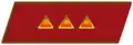 - Chevron: in Goldfadenstickerei gehaltener rot paspelierter großen Stern, darunter ein roter goldpaspelierter Stoffwinkel umrankt von zwei goldfarbenen rot paspelierten Lorbeerzweigen