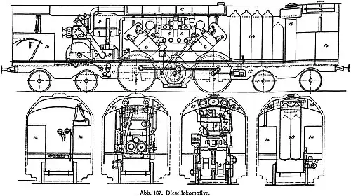 Konstruktionszeichnung der Diesel-Klose-Sulzer-Thermolokomotive