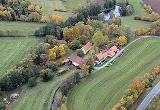 Die vier Gebäude des Weilers Dietersberg liegen im weiten Tal der Ascha etwa 2 Kilometer nordöstlich von Schönsee.