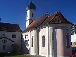 - Filialkirche Heilige Dreifaltigkeit. Rokokobau (1759) durch den aus Obenhausen stammenden Baumeister Jakob Jehle.