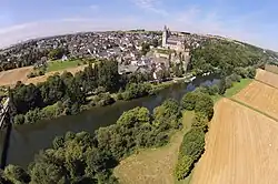 Blick vom Kirchenfelsen über den „Weinberg“ auf die Lahn