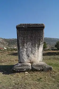 Der Hügel wurde nach einem 4 m hohen römischen Steinsockel benannt, der etwa 200 m nordöstlich von Dikili Tash im 1. Jahrhundert n. Chr. zu Ehren des römischen Offiziers Gaius Vibius Quartus errichtet wurde. Damals verlief die Via Egnatia direkt südlich des Steinsockels. Der Marmorsockel ist auf zwei Seiten, der westlichen und südlichen, beschriftet. Die Inschrift wurde von den Dorfbewohnern in der Vergangenheit im unteren Teil zerstört. Man glaubte, der Sockel sei die Krippe des Bukephalos, des Lieblingspferdes von Alexander dem Großen, und die stillenden Frauen rieben deshalb Marmor vom Sockel ab und mischten ihn unter ihre Milch in der Hoffnung, ihre Söhne könnten so ähnliche Stärke wie Alexander erlangen.[2]