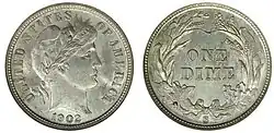 Der Dime [daɪm] ist eine Münze der Vereinigten Staaten im Wert von zehn Cent oder einem Zehntel Dollar. Das gegenwärtige Münzbild zeigt den 32. Präsidenten Franklin D. Roosevelt auf der Vorderseite, während auf der Rückseite eine Fackel, ein Eichenzweig und ein Olivenzweig zu sehen sind.