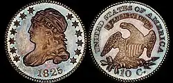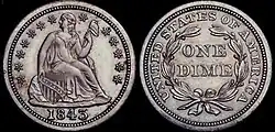 Die ersten Dimes für den Umlauf erschienen 1796, damals noch ohne Wertangabe. Dieser Typ wird „Draped Bust“ genannt. 1809 wurde die Gestaltung der Münze geändert („Capped Bust“) und die Wertangabe „10 C.“ hinzugefügt. Seit 1837 erscheint „One Dime“ als Wertangabe. In jenem Jahr wurde die „Seated Liberty“ als neues Münzmotiv gewählt. Von 1892 bis 1916 sind sie als „Barber Dime“ bekannt, benannt nach dem Designer Charles E. Barber. 1916 bis 1945 trug die Münze das Bildnis der Liberty mit geflügeltem Kopf, gestaltet von Adolph Alexander Weinman. Oft wurde dieses Motiv allerdings als Merkur gedeutet, weshalb dieser Typ „Mercury Dime“ genannt wird.