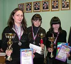 Dina Belenkaya (Mitte) beim Sieg in der I. Liga (2011)
