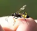 Die männlichen Schlupfwespen sind schlanker. Deren Fühler sind vollständig dunkel gefärbt. Die Männchen besitzen im Gegensatz zu den Weibchen neben einem gelben Augeninnenrand auch ein gelbes Gesicht. Thorax, Hinterleib und Beine sind ähnlich gefärbt wie bei den Weibchen.