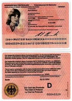 Diese Personengruppe erhält vom Auswärtigen Amt einen roten Sonderausweis mit dem Kennbuchstaben „D“ (siehe nebenstehende Abbildung).
