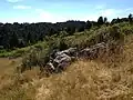 | Halfway Rock | Nach 3,19 Meilen wird der „Halfway Rock“, ein markanter Stein (Bild) im Mount Tamalpais State Park erreicht. Nach der heutigen Streckenführung sind an dieser Stelle allerdings erst 43 % der Gesamtstrecke überwunden. | 3,19 |