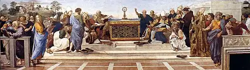 Disputa del Sacramento („Disput über das Sakrament“) ist der hergebrachte Titel eines der berühmtesten Gemälde von Raffael. Das großflächige Wandfresko in der Stanza della Segnatura, heute innerhalb der Vatikanischen Museen, entstand 1509/10 und ist Teil eines alle vier Wände und die Decke des Raums einbeziehenden christlich-humanistischen Bildprogramms. In diesem vertritt es die Theologie als divinarum rerum cognitio („Kenntnis der göttlichen Dinge“).[1]