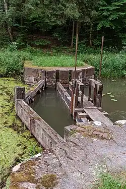 Im Umfeld des Dammes befinden sich ein paar kleinere Sandsteinsteinbrüche, die wahrscheinlich der Nahversorgung mit Baumaterial für Durchlass-, Stollen- und Bacheinkleidung dienten.