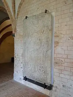 Erstmals wurde 1337 eine Mühle am Auslauf der Mildenitz am Dobbertiner See genannt.[11] Von dort führte durch den morastigen Grot Werder, dem heutigen Klosterpark, der einzige Weg zum Kloster. Die Mönche hatten diesen Weg wohl mit Bedacht gewählt, denn hier konnten die wehrhaften Mönche einen ansehnlichen Haufen Feinde abhalten. Der Große Werder bildete eine natürliche Grenze zwischen Dorf und Kloster. 1371 schenkte der Bruder Hinricus, ein Mollenmeister, nach den Nonnen sein im Dorf Dobrotin gelegenes Haus mit zugehörigem Besitz.[12] Die erhalten gebliebene, fast zwei Meter große Grabplatte des Mühlenbauers Hinrik Glove steht heute im südlichen Kreuzgang des Klosters. In der rechten unteren Ecke ist ein Rad mit vier Speichen und in der linken Ecke eine Axt zu sehen. Die Axt als Zeichen für den Beruf des Verstorbenen deutet auf einen Mühlenbauer hin.