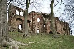 Nördlich des Stadtkerns liegen auf einem die Stadt um ca. 10 Meter überragenden Hügel (60 m über NN) die Ruinen der Burg Dobra oder Dewitzburg, die im 13. Jahrhundert, als das Gebiet noch dem Bistum Cammin gehörte, von Tempelrittern erbaut wurde und 1352 mitsamt dem Lande Daber als Lehen an die mecklenburgische Familie Dewitz kam.[15] Erhalten sind Ruinen des im 15. Jahrhundert erbauten Alten Hauses und des um 1538 durch Jobst von Dewitz errichteten Neuen Hauses.[21][22] Der Burghügel war beim Bau der Anlage vom Dabersee umgeben, der aber durch Flussregulierungen im Jahr 1865 trockengelegt wurde. Die Burg war seit dem Ende des 18. Jahrhunderts nicht mehr bewohnt und wurde in der folgenden Zeit zum Teil abgetragen. Seit 1861 befand sich die Burgruine im Besitz der Familie von Diest, die 1862 und 1905 Erhaltungsmaßnahmen durchführte.[4] Seit 1957 steht die Burg unter Denkmalschutz, seit 2008 werden Sicherungsmaßnahmen der einsturzgefährdeten Burg durchgeführt.[23]