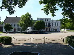 - Szameitkehmen (1938–1946: Lindenhaus, heute russisch: Bolotnikowo) mit ca. 250 Hektar war ein Gutshof der Familie Steiner. Seit etwa Mitte des 18. Jahrhunderts war er im Besitz dieser Familie. Haupteinnahmequelle war die Zucht von Trakehnern für die Wehrmacht (Remontepferde). Remonten wurden auf einem eigenen Remontemarkt in Szameitkehmen der Remontierungskommission zum Verkauf gestellt. Weitere Gutsbetriebe der Familie waren das Rittergut Waldaukadel (russisch: Stepnoje, nicht mehr existent) mit etwa 260 Hektar und das Rittergut Reuschendorf (polnisch: Ruska Wieś) im heutigen Polen mit etwa 600 Hektar. Das Gut unterhielt auch eine Brennerei und ein Sägewerk. Dieses Rittergut befindet sich heute im Besitz des polnischen Landwirtschaftsministeriums und ist noch erhalten. Die Pferdezucht war neben der Viehzucht erstrangig. Die Viehzucht (Rittergut Waldaukadel) war zugeschnitten auf Milcherzeugung und den Verkauf von Bullen und Sterken[20] auf der Auktion der Ostpreußischen Herdbuchgesellschaft in Insterburg (russisch: Tschernjachowsk).