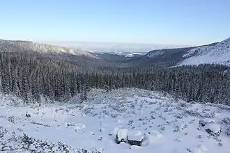 - von Süden: Hauptkamm der Tatra bis zur Świnica weiter bis zur Koszysta,
