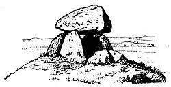 - ↑ (dän. Langdysser) ist die in Dänemark gebräuchliche Bezeichnung für Dolmen, die in einem rechteckigen oder trapezoiden Hünenbett liegen, im Gegensatz dazu sind Runddolmen bzw. Runddysser jene Dolmen, die im Rundhügel liegen
