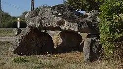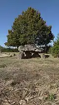 Der narbige Dolmen aus Puddingstein besitzt einen etwa 3,0 × 2,0 m großen ovalen Deckstein, der auf drei Tragsteinen liegt, einen weiteren Seitenstein besitzt und nach Süden offen ist, wo möglicherweise Steine fehlen. Der Zugang fehlt und lag wahrscheinlich im Osten.