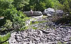 200 m südlich liegt eine Karstlandschaft, deren Oberfläche durch tiefe Karren gegliedert ist. Die französisch Lapiaz genannten Karren sind eine geologische Form, die auf Kalkstein- und Dolomitoberflächen durch Regenwasser erzeugt wird.