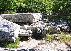 Etwa 200 m südlich und tiefer gelegen, liegt der Kalksteinbruch, aus dem die Platten stammen, die für den Bau der Dolmen verwendet wurden. Die Oberfläche ist in natürlich entstandene regelmäßige Rechtecke unterteilt.