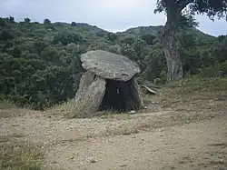 Der etwa 1,5 m hohe Dolmen wurde 1919 zum ersten Mal ausgegraben, wobei Reste von Keramik und Knochen gefunden wurden. Bei der Grabung von 1946 wurden Scherben, Stücke von Halsketten aus Speckstein und ein Stück handgemachter Keramik entdeckt. Der Dolmen wurde 1983 restauriert.