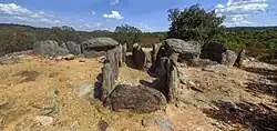 Dolmen 5 ist der östlichste der Gruppe. Er ist ein Kammergrab in einem kleinen ovalen Hügel, der durch eine Ringmauer begrenzt wird. Die Megalithanlage besteht aus einem Gang und vier Kammern.