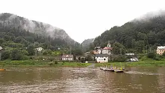 Das Dorf besitzt einen Bahnhof an der Bahnstrecke Dresden–Děčín und ist durch eine Fähre mit dem anderen Elbufer verbunden.