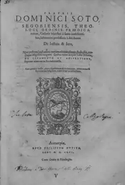 - ↑ a b Wim Decock: Domingo de Soto: De iustitia et iure (1553-1554). In: S. Dauchy et al. (Hrsg.): The Formation and Transmission of Western Legal Culture. 150 Books that Made the Law in the Age of Printing. Springer Cham, 2016, S. 85 (englisch, academia.edu).